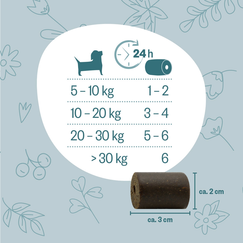 Dette øger foder accepten, og snacken er derfor velegnet som en lille belønning. Kan også bruges sammen med tørfoder. Er en god følgesvend på rejsen.