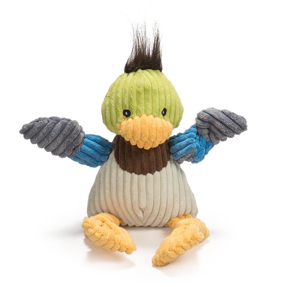 Duck Knotties i blødt og lækkert  fløjl, har 5 squeakers.