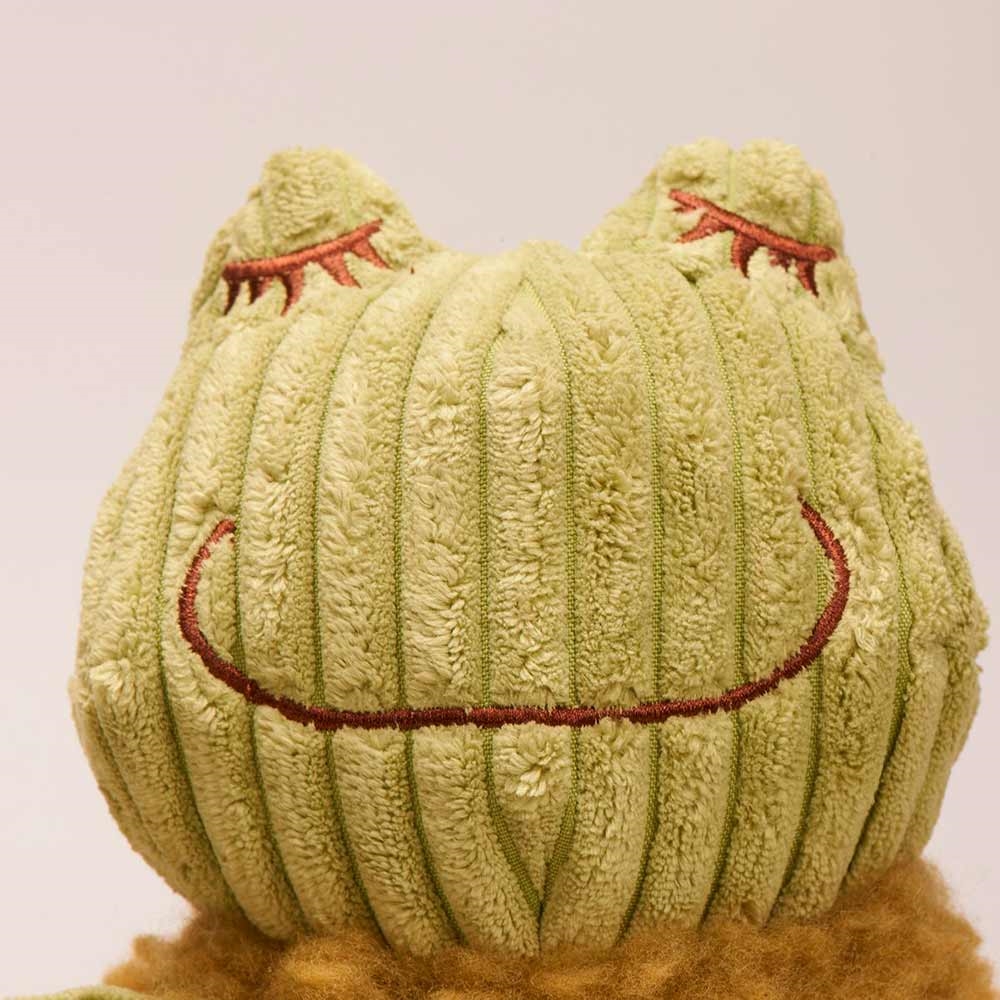Denne model er designet i lækkert plys og fløjl. Derudover er der bundet en knude på hvert ben og begge arme. Alle detaljer er broderet på, så der er altså ingen knapper eller andet, som din hund kan bide af. Total sød frø med plysmave. Bamsen kan selvfølgelig maskinvaskes. Hugglehounds når det er bedst. Lavet i meget begrænset antal.