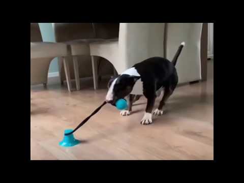 Aktivitetslegetøj til hunde. Rigtig sjov must-have til den legesyge og aktive hund. Uanset alder, alle hunde elsker denne gadget. Det er en tandrensende bold med tov igennem. Torvet ender i en sugekop som du kan sætte fast på en glat flade. Det kan være et gulv eller en væg. Bare der er glat sådan at sugekoppen kan sættes fast.