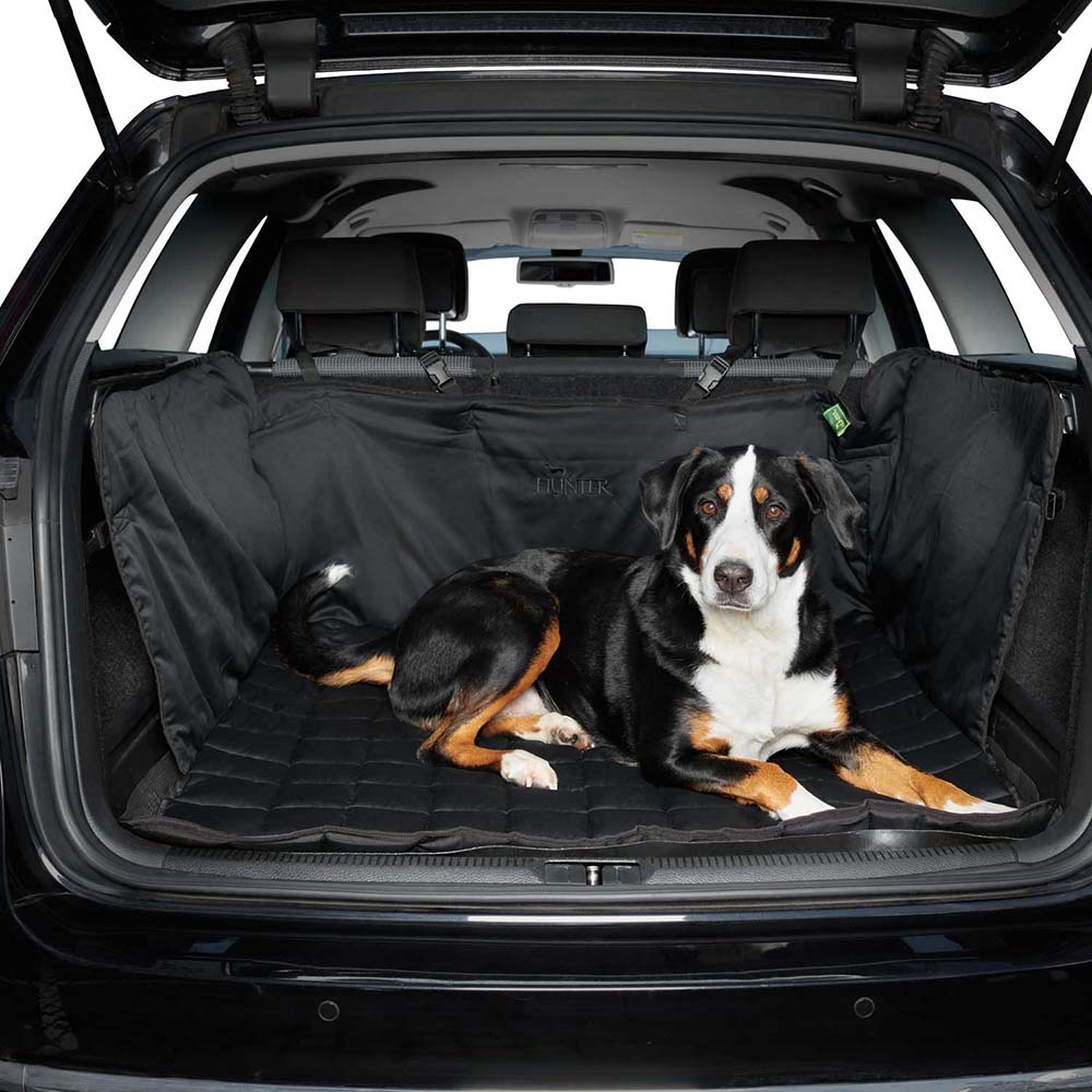 Den beskytter pålideligt din bils bagagerum mod snavs og hår, når du transporterer en eller flere hunde. Det praktiske betræk er designet, så kofangeren også er beskyttet mod ridser og snavs, når din hund stiger ind og ud – en funktionel detalje, der forhindrer skader på lakken, hvis din hund har lært kun at hoppe ind og ud af bagagerummet på din kommando.