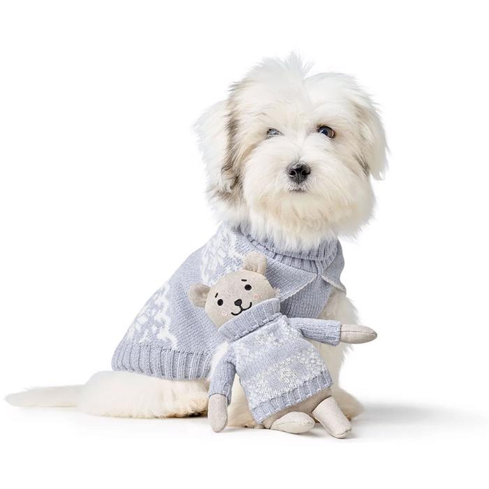 Sød bamse til hunden. En bjørn med grå striktrøje på.