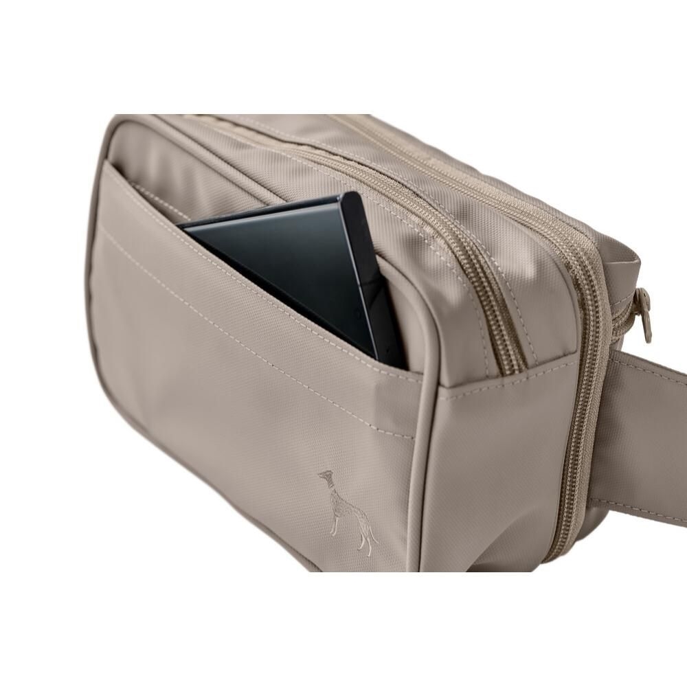 Smart crossover taske i en flot taupe grå farve. Indeholder et lille tæppe.
