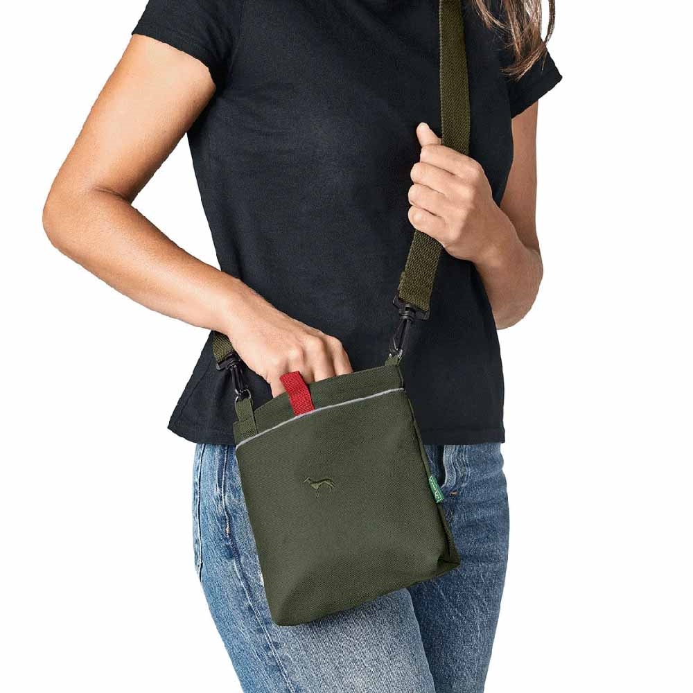 Tasken kan indeholde din hunds yndlingsgodbidder i et rum, som med et snuptag kan åbnes og lukkes via en magnet. Tasken har en ekstra opbevaringsmulighed til nøgler, mobil eller andet småt.