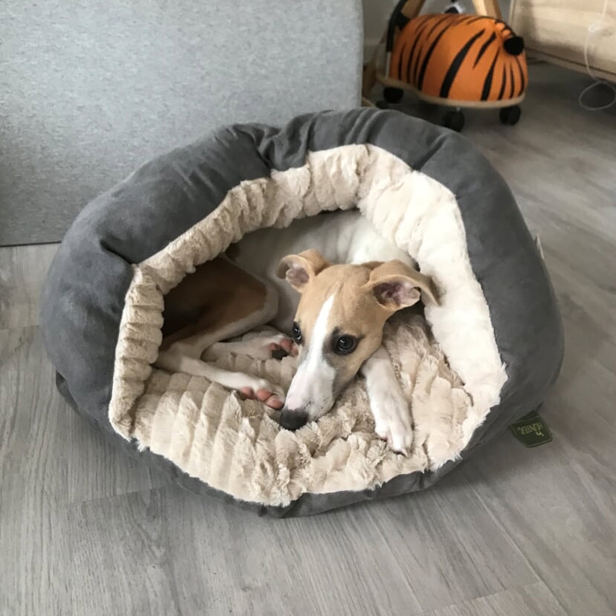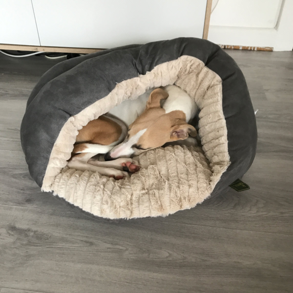 Blød lækker hundeseng med indbygget dyne. En ægte hule med putteværdi