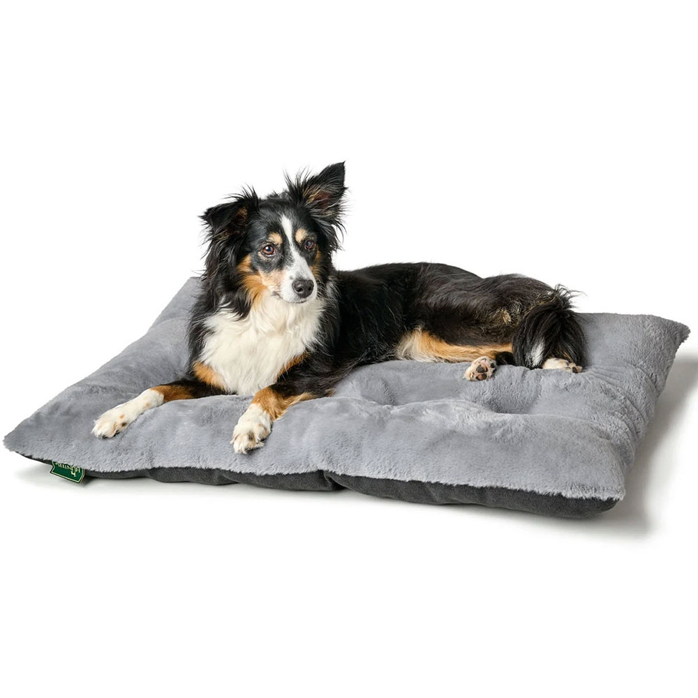 Den tykke polstring og det utroligt bløde plys inviterer din bedste ven til lange komfortable lure på denne pude. Puden er vendbar og har to forskellige betræk sider. Så hvis du har en hund der ikke kan lide det helt så varmt, så kan puden placeres med siden af ​​robust strukturstof opad.