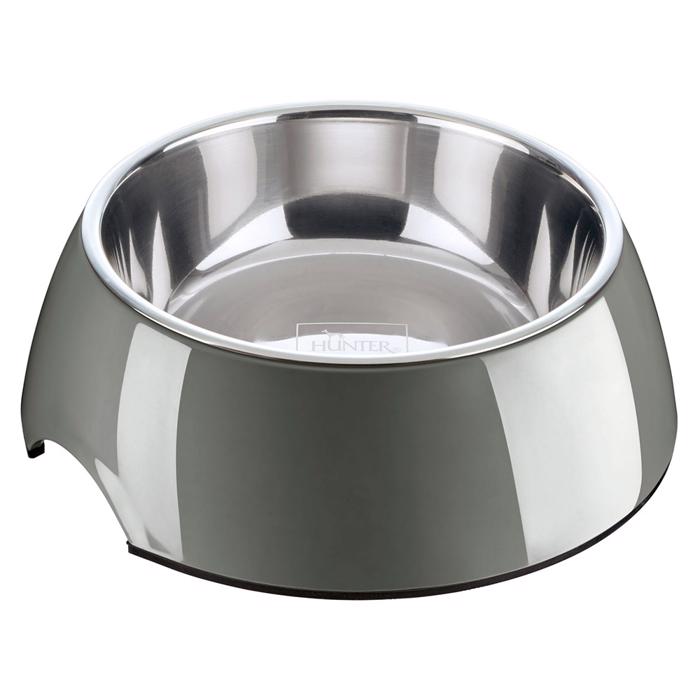 Smuk melamin skål fra Hunter i en smuk grå farve. Vælg mellem 3 størrelser til dit pelsede kæledyr.