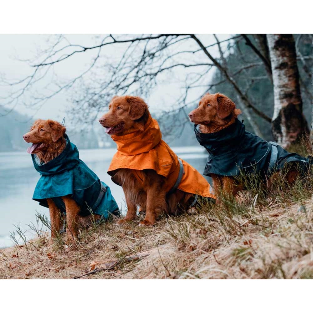 Har du en hund du gerne vil holde tør og forholdsvis ren, på jeres gåtur i regn, slud, blæsevejr og mudder? Så har Hurtta designet denne nye og utrolig funktionelle regnjakke. Den grå krave, som du kan se på billederne, kan trækkes helt sammen med en elastiksnor, så vandet ikke trænger ind under jakken. Den behagelige bløde krave kan strammes op omkring hundens hals, for at beskytte bryst og nakkeområdet.