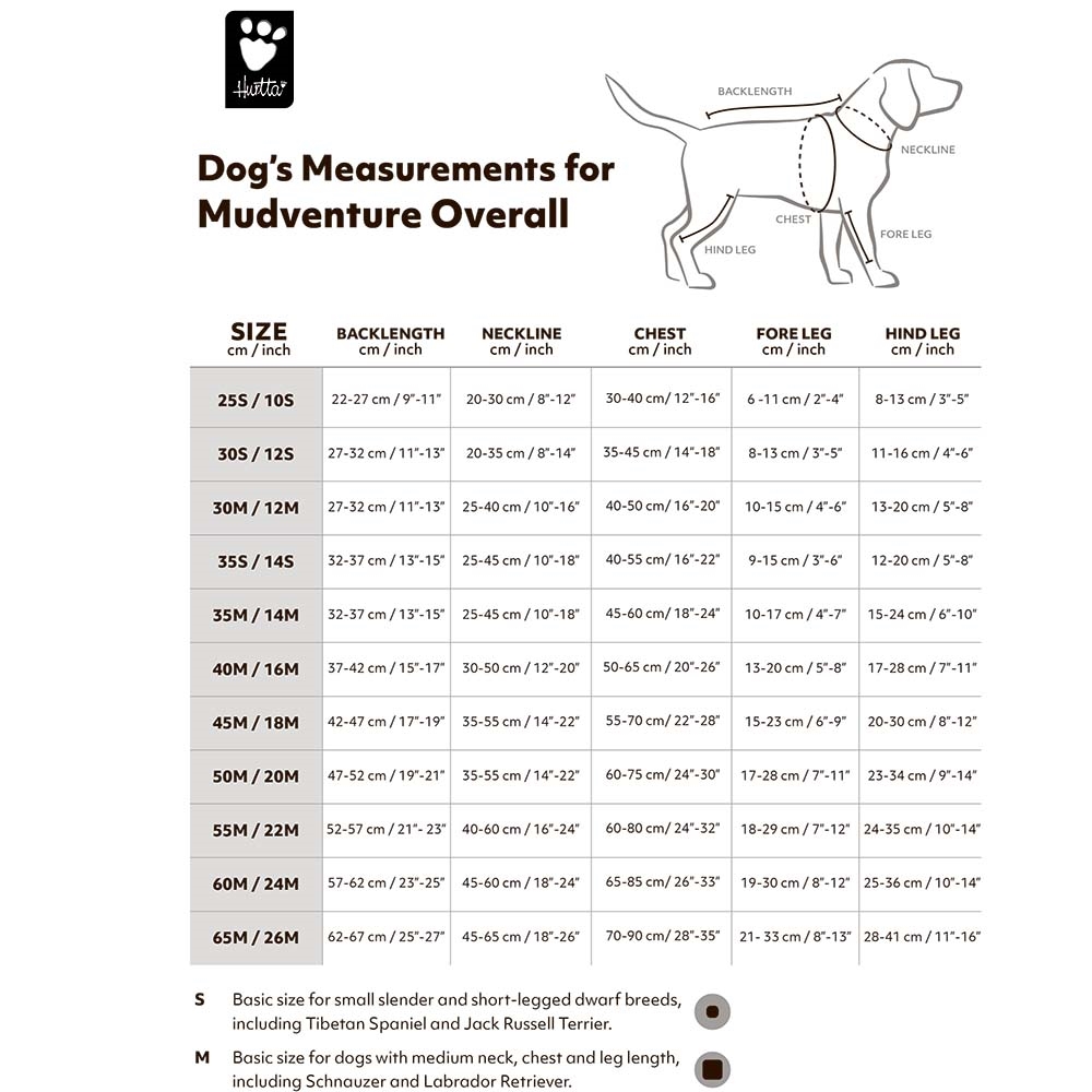 Hurtta Mudventure overall er en heldragt til hunden som holder mudder og sand væk fra pelsen. Heldragten er designet med en lynlås, så den er nem at give hunden på og tage af. Dragten har gode justeringsmuligheder på indersiden af dragten som gør, at du kan justerer i blandt andet ben, talje, hals og ryg. På denne måde kan du få den rette pasform til lige netop din hund.