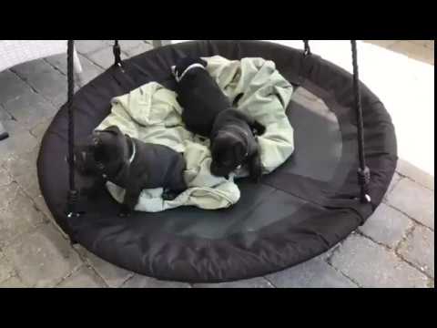 Kan sige at denne gynge bestemt er et hit både for hundemor og de små. Du kan sagtens også bruge gyngen til voksne hunde ude og inde. Fyld den med bløde tæpper og puder.. Så laver du en helt utrolig putte platform. Læg et blødt tæppe under gyngen så der er ekstra sikkerhed, hvis de små hvalpe børn er for legesyge.