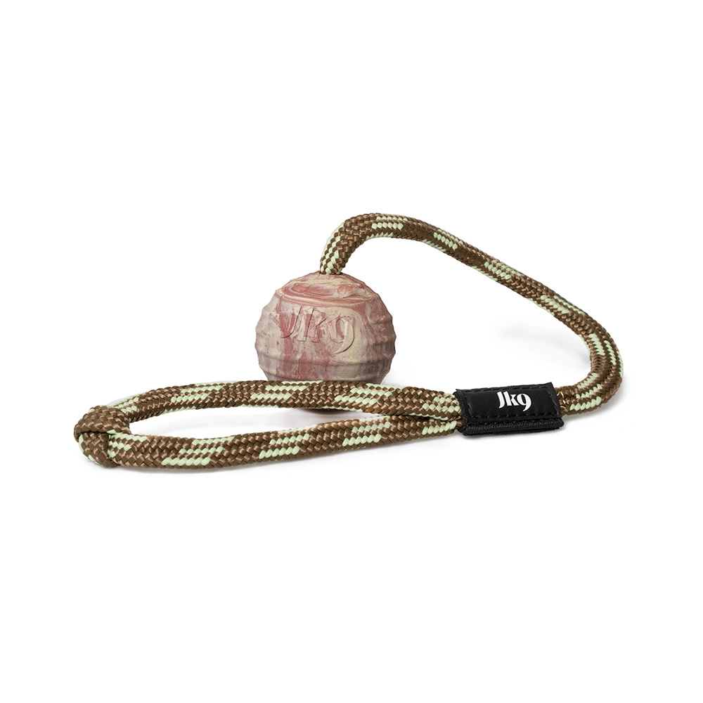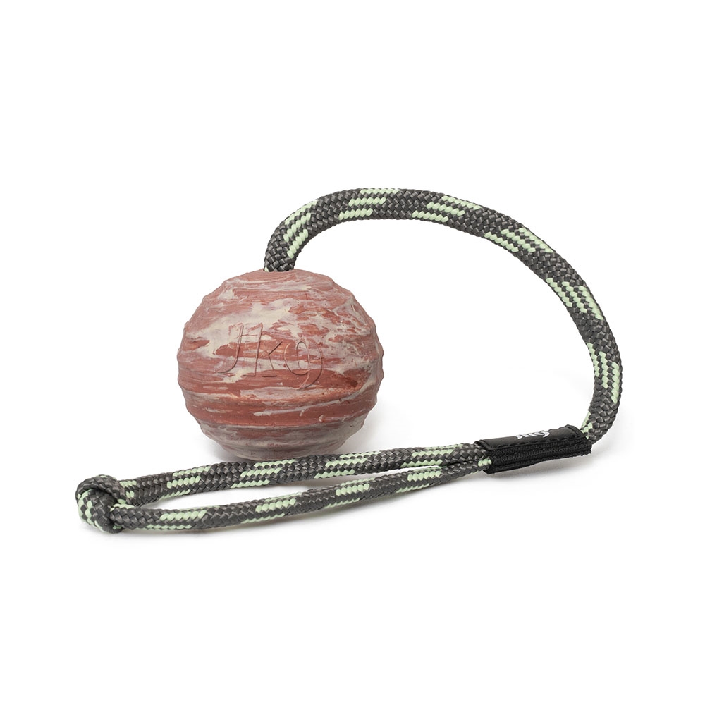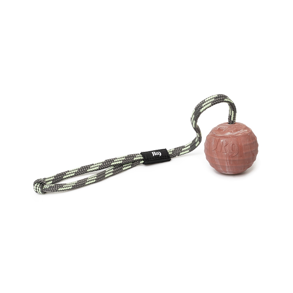 Julius K9 IDC gummibold med rebhåndtag, er et slidstærkt og alsidigt stykke hundelegetøj, udviklet til både leg, træning og apportøvelser. Bolden er fremstillet af naturlig kautschukgummi, som er skånsom mod hundens tænder og tandkød.
