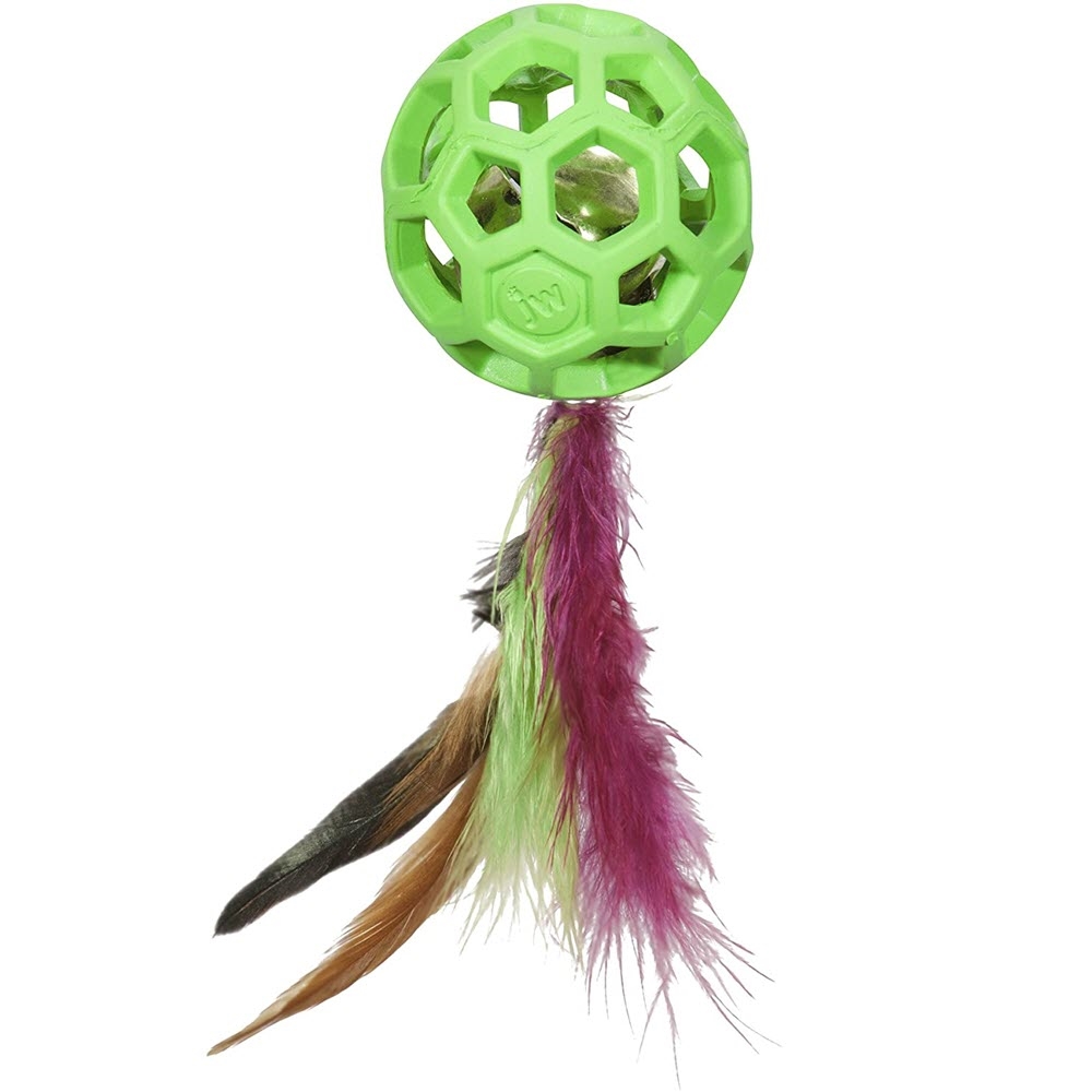 Denne sjove bold fra JW bliver din kat ellevild med. Den har fjer i den ene ende, som din kat rigtig kan lege med. Bolden er grøn og har en masse huller, som din kat kan holde fast i. Inde i midten af bolden er der en klokke.