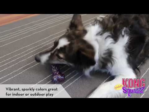 Denne sjove kastepind er fremstillet i et blødt og farverigt, men yderst holdbart K90 materiale, der er næsten umuligt at bide i stykker. Et drys konfetti giver KONG Squeezz Confetti legetøjet ekstra kulør.