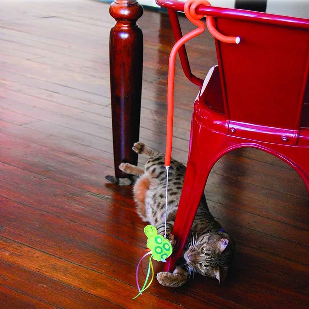 Hold katten aktiv og underholdt med dette sjove kattelegetøj fra KONG. Det fleksible håndtag kan bøjes og fastgøres på forskellige steder, så katten får nye udfordringer og spændende jagtoplevelser hver gang.