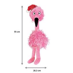 Virkelig en nuttet julebamse fra KONG USA. Så lige på denne nuttede flamingo. Den er fløjet ind for at være bedste ven til din hund derhjemme. Kroppen er stor og slasket, lige som vores hunde elsker det. Vi kalder hende for Pinky. Hun har fået en julehue på og er klar til råhygge hele julen og efter jul.