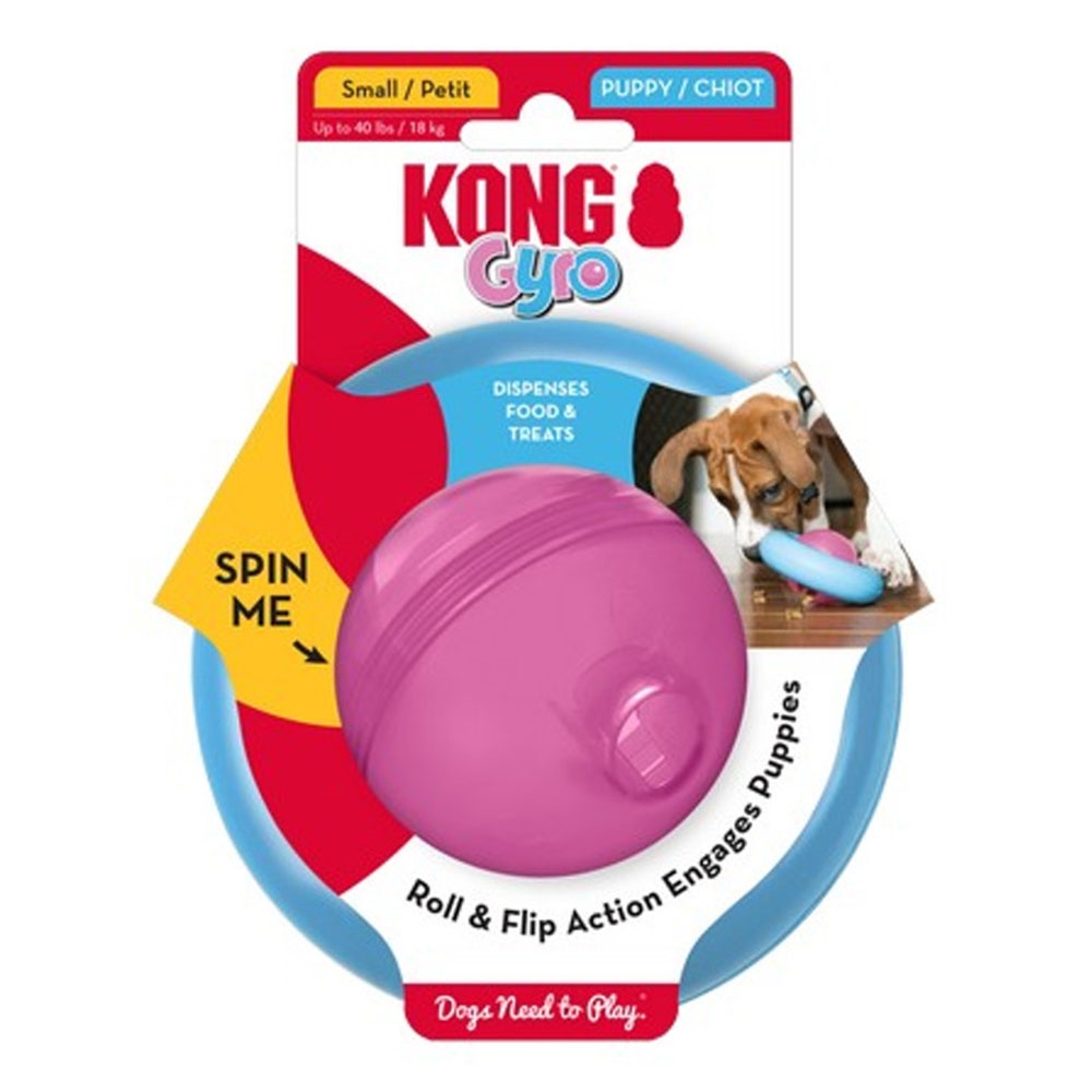 KONG Gyroen vil helt sikkert underholde din hund eller hvalp med dens sjove rul- og drej funktion. Med den roterende kugle i midten og den ydre ring, lokker det hunden til at skubbe og rulle legetøjet.