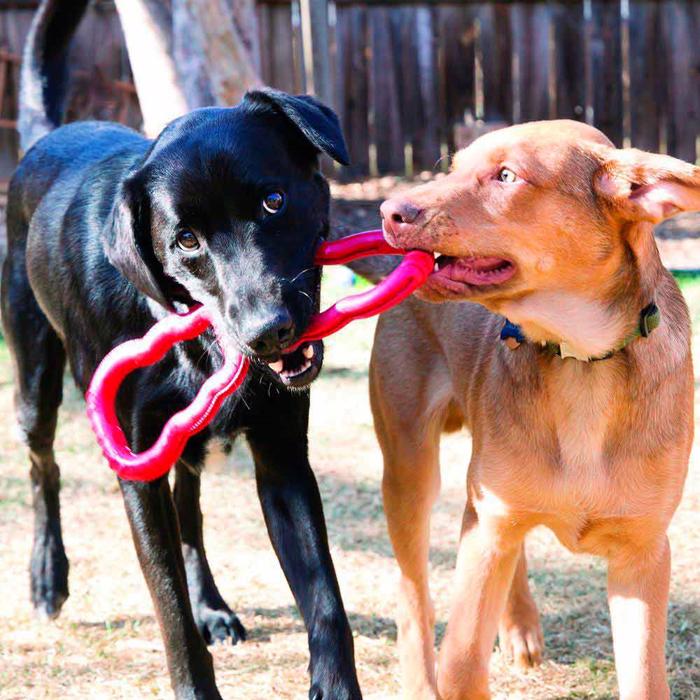 Sjovt trækkelegetøj fra KONG. Hold i den ene ende af legetøjet, og lad din hund trække i modsatte ende.
