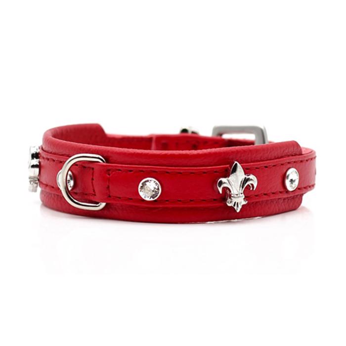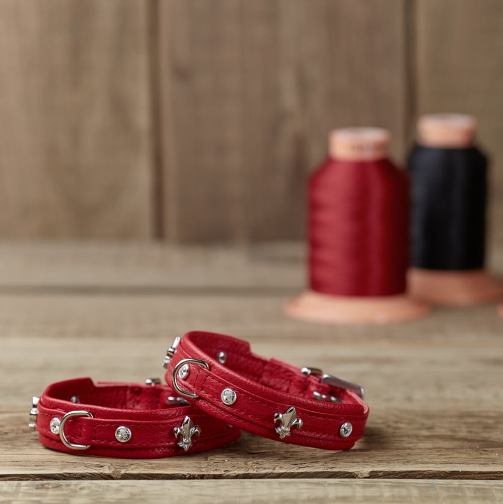 Læder Halsbånd Håndlavet Med Diamanter Design Mini Fleur Rød 27 x 18 mm.Smukt Designer håndlavet luksus halsbånd
