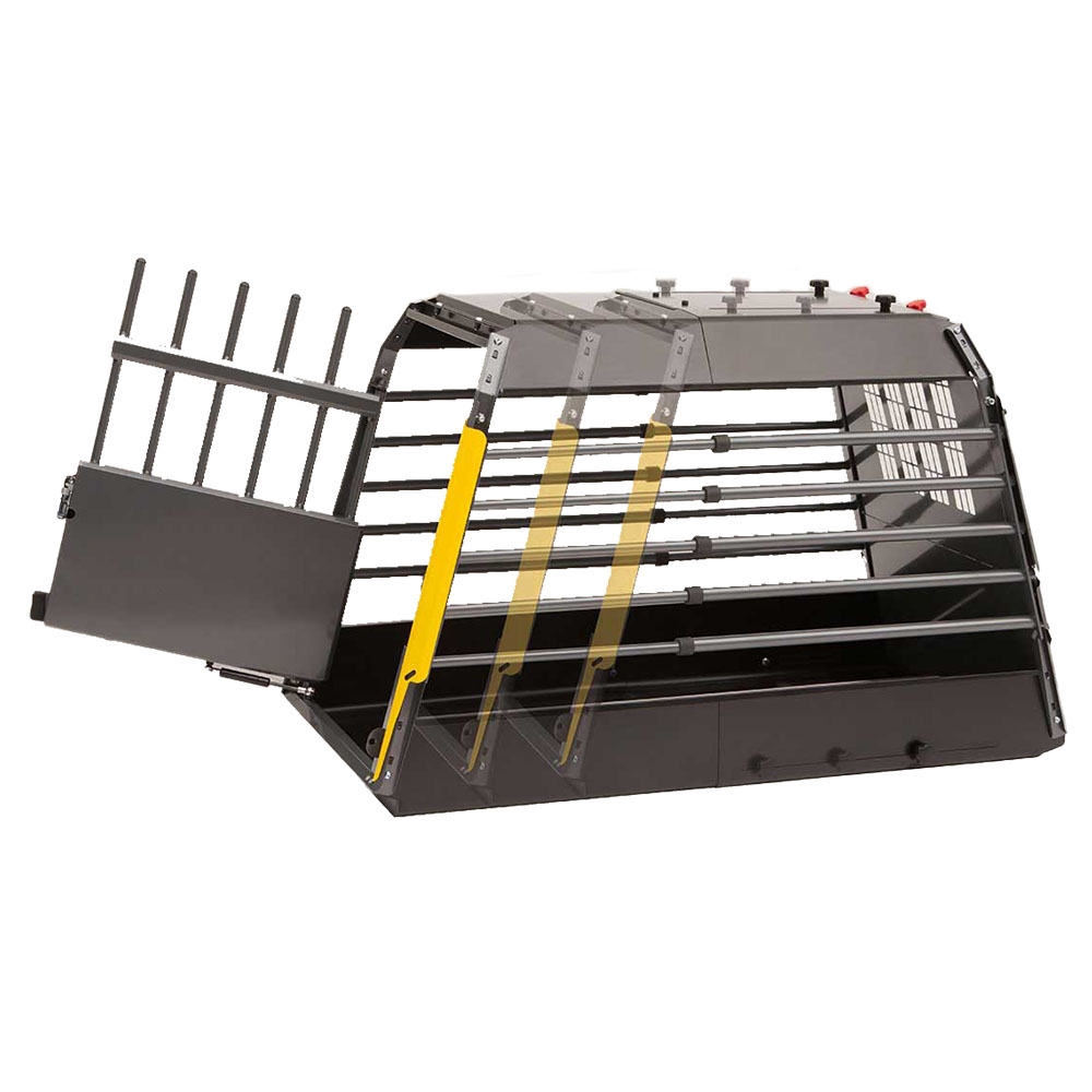 Variocage er lavet af pulverlakeret stål og forsynet med nøglelås. Det har optimal udluftning og ingen udstikkende emner, som kan skade hunden. Der medfølger stropper til fastgørelse i bilen.