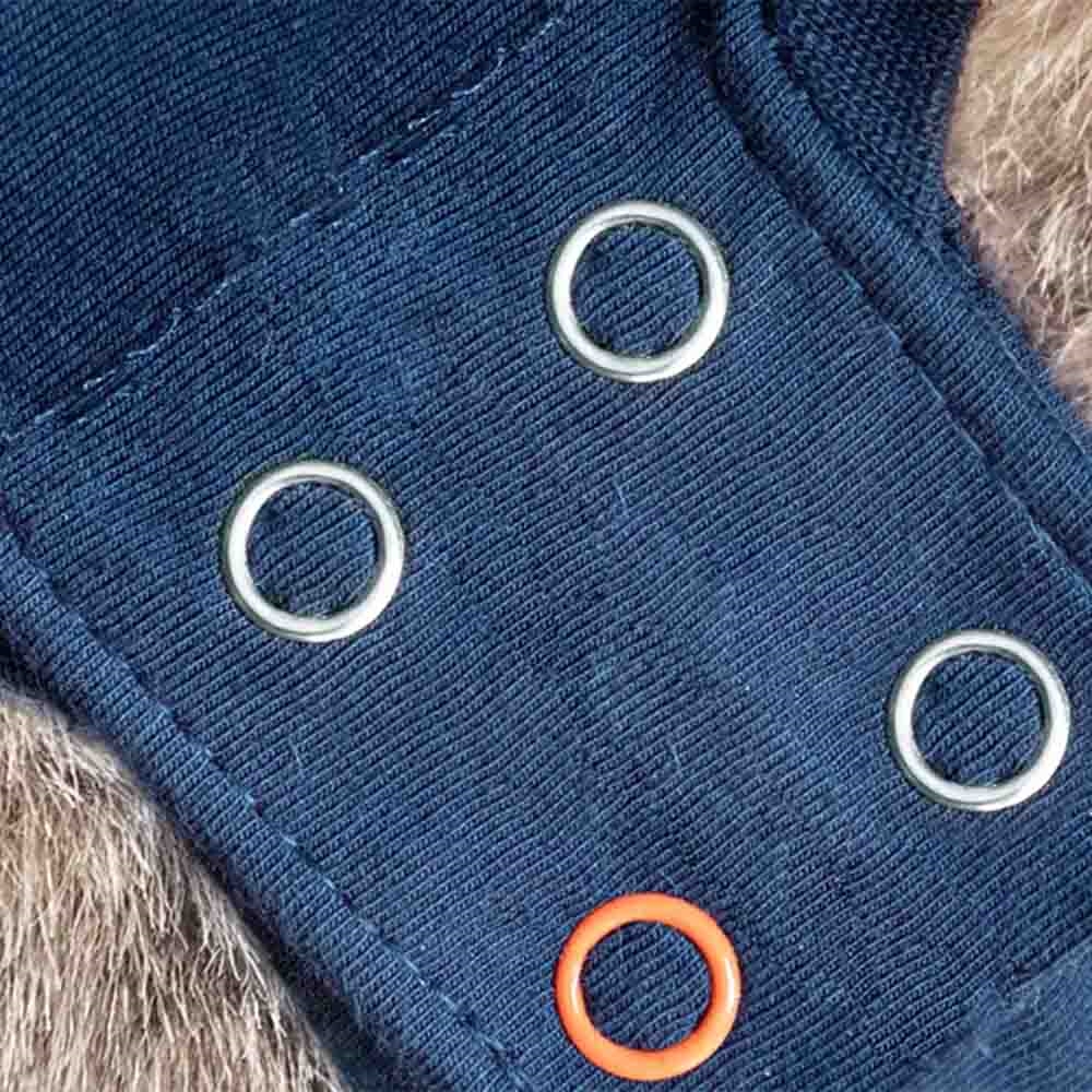 For at beskytte området mellem skulderbladene og halsen har trøjen et længere, blødt og elastisk bånd med løkker til fastgørelse af et halsbånd, hvilket gør det vanskeligere for en hund at tage trøjen af. Blød, elastisk kant omkring for- og bagben samt hale hjælper med at forhindre gnaven eller tryk på følsomme områder, selv ved længere tids brug.