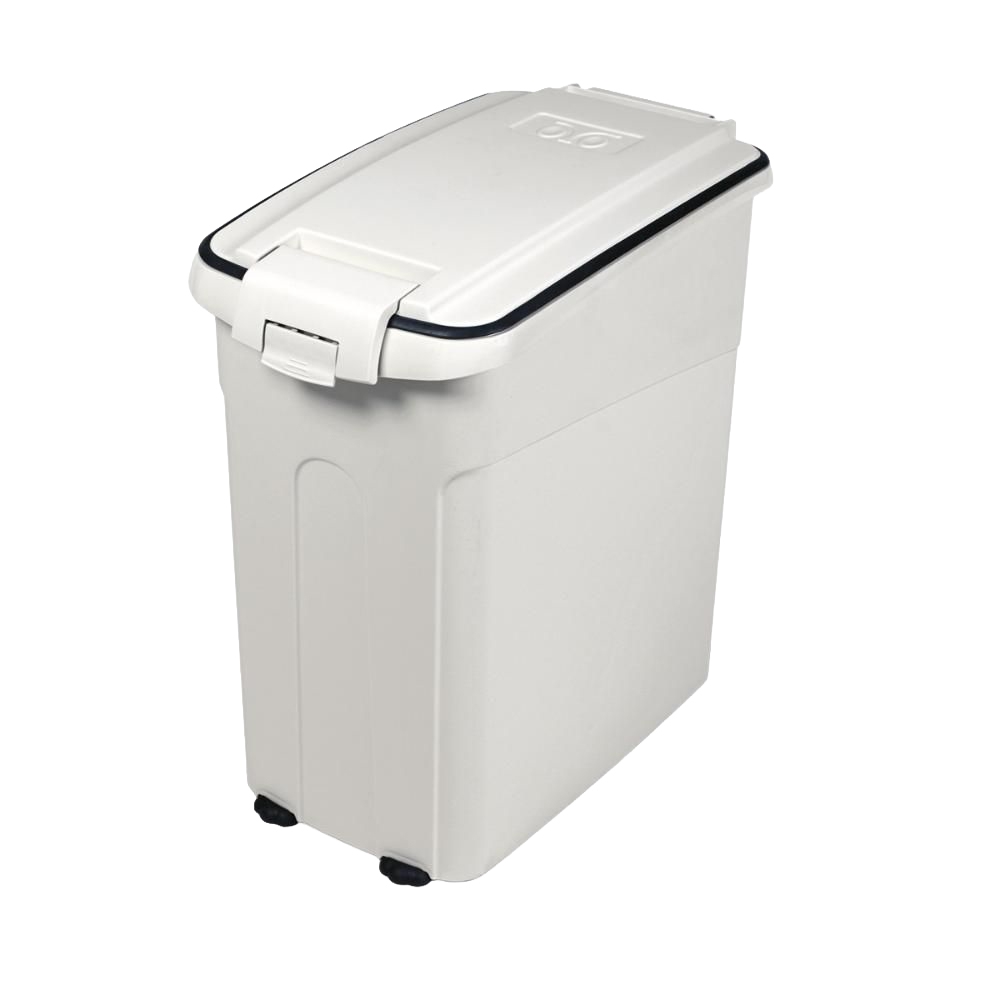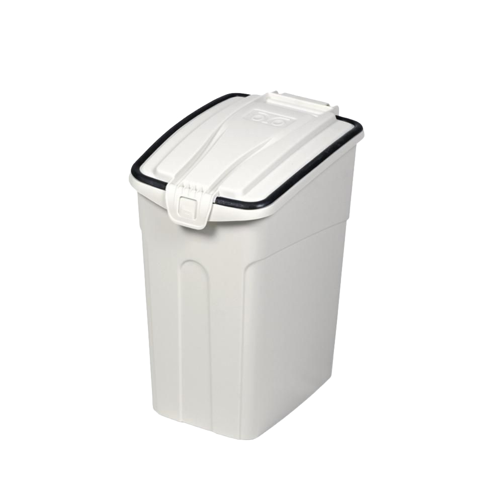 Praktisk og lufttæt fodercontainer med integreret foderskovl - hold dit tørfoder friskt og nemt at dosere.