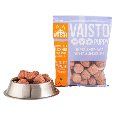 MUSH Barf Vaisto Puppy med gris, kylling og kalkun. SKAL afhentes i vores showroom i Slagelse.
