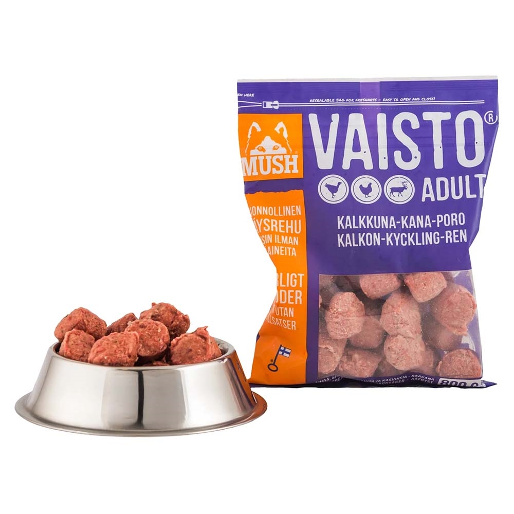 Vaisto® tilbyder helt kornfri og tilsætningsfri ernæring, der styrker muskler, skelet og fremmer en god generel velvære. Derudover er MUSH Vaisto nem at dosere.