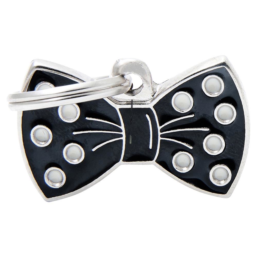 Hundetegn - en sød sort sløjfe med hvide prikker. Tegnet er inklusiv gravering.