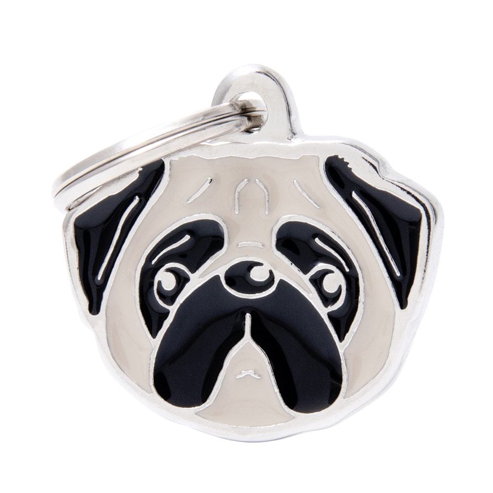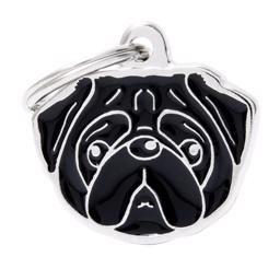 Hundetegn med racehunden Mops. Tegnet er inklusiv gravering.