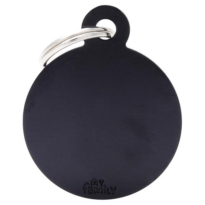 Hundetegn i metal. Dette runde hundetegn er sort og findes i 2 størrelser.