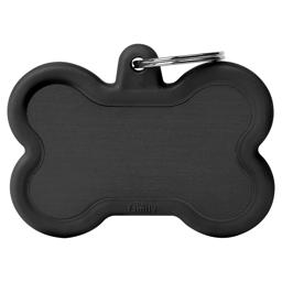 Her får du et kvalitets hundetegn i metal fra MyFamily, som er designet med en gummikant, som gør tegnet mere lydløst, når det hænger i hundens halsbånd og dingler. Metalet og gummiet er sammensmeltet, så det ikke larmer, samt så det holder bedre.