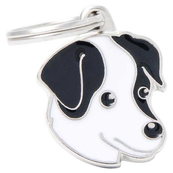 Her får du et kvalitets hundetegn i metal fra MyFamily, som designet som en jack russel terrier.