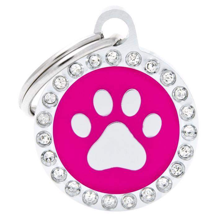My Family Hundetegn - En lille cirkel i pink og sølv, med pote og sten.