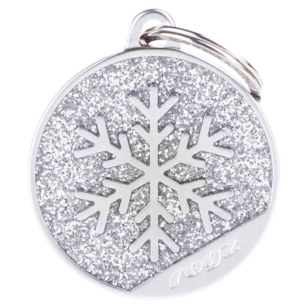 My Family Hundetegn Rund Cirkel i Sølv Glimmer med Snefnug Rogz