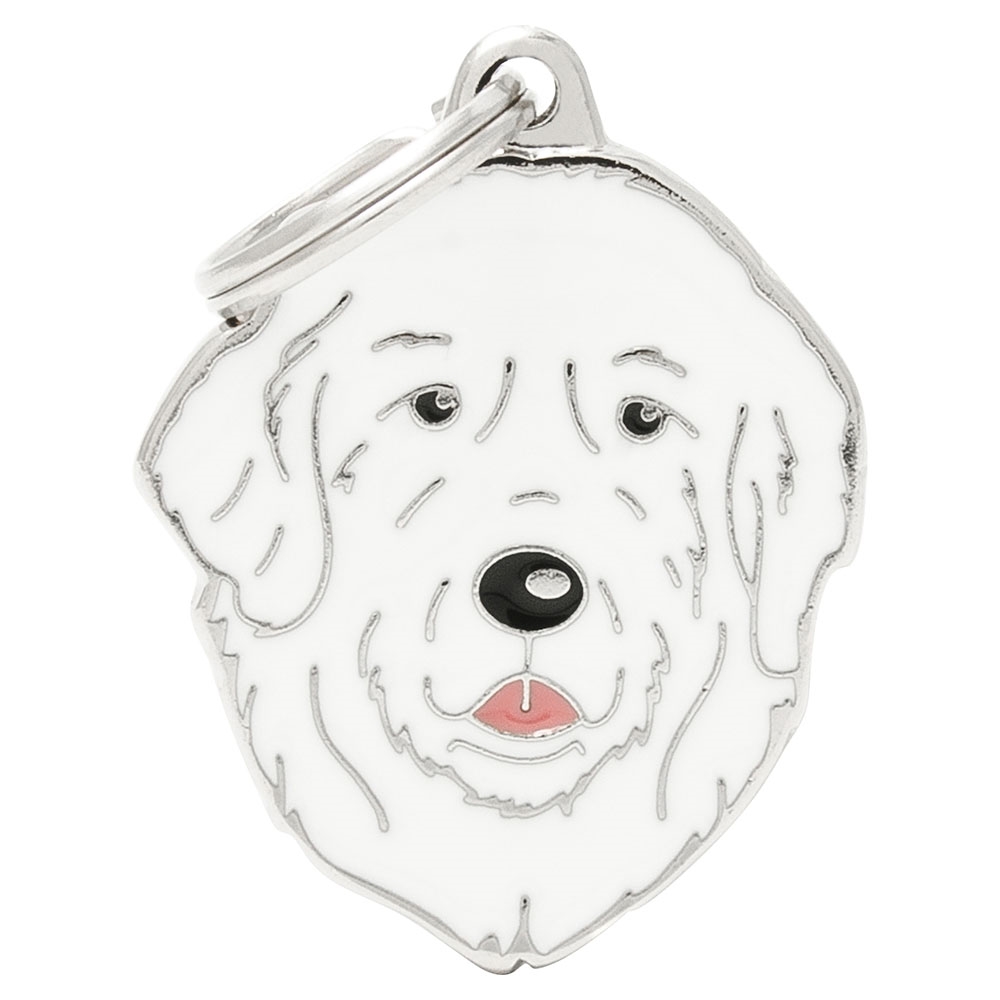 Her får du et kvalitets hundetegn i metal fra MyFamily, som er designet som racehunden Pyreneerhund.