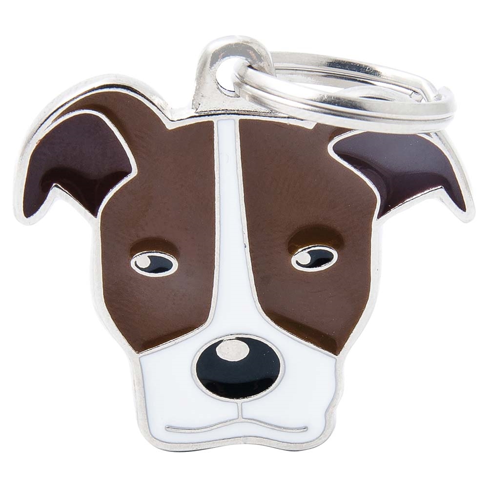 Her får du et kvalitets hundetegn i metal fra MyFamily, som er designet som racen amerikansk bully.