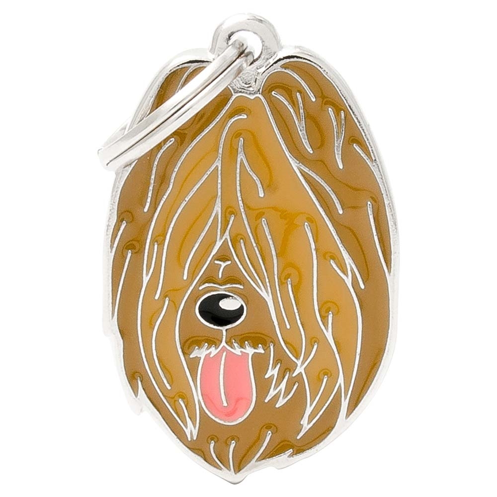 Her får du et kvalitets hundetegn i metal fra MyFamily, som er designet som racen Briard.