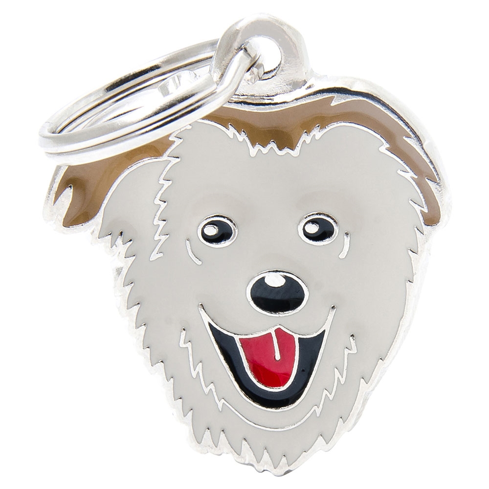Her får du et kvalitets hundetegn i metal fra MyFamily, som er designet som en blandingsrace.