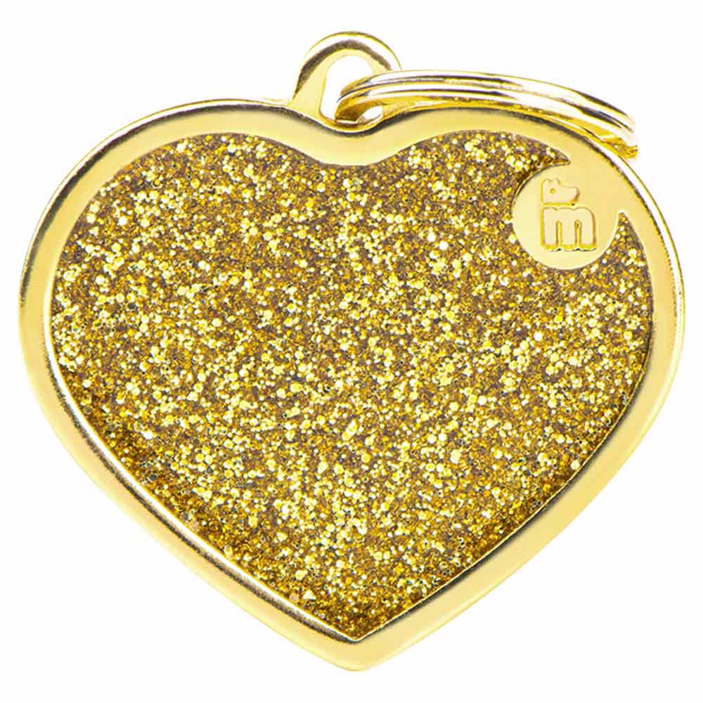 My Family Stort Hundetegn Shine Guld Hjerte med Glimmer