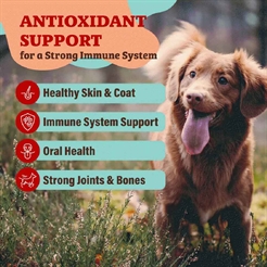 Antioxidanter spiller en afgørende rolle i at beskytte din hunds celler mod oxidativ stress, som kan bidrage til aldring og sygdom. Ved at inkorporere dette granulatpulver i din hunds daglige kost, hjælper du med at støtte din hunds immunsystem, kognitive funktion, hjertesundhed og meget mere. Plus, den naturlige frugtagtige smag er et hit hos selv de mest kræsne hunde. Den naturlige bærsmag vil få dem til at slikke skålen ren!