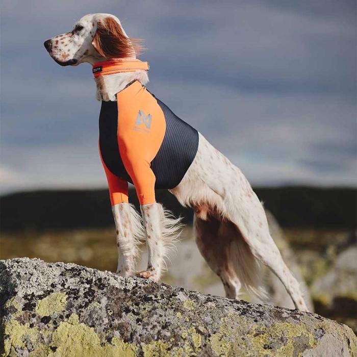 Nogen hunde er ekstra følsomme end andre. Denne tshirt kan du bruge inden under hundeselen eller jagtvesten. Den er behagelig for hunden at have på og så er den tætsiddende, uden at hindre hundens gang.