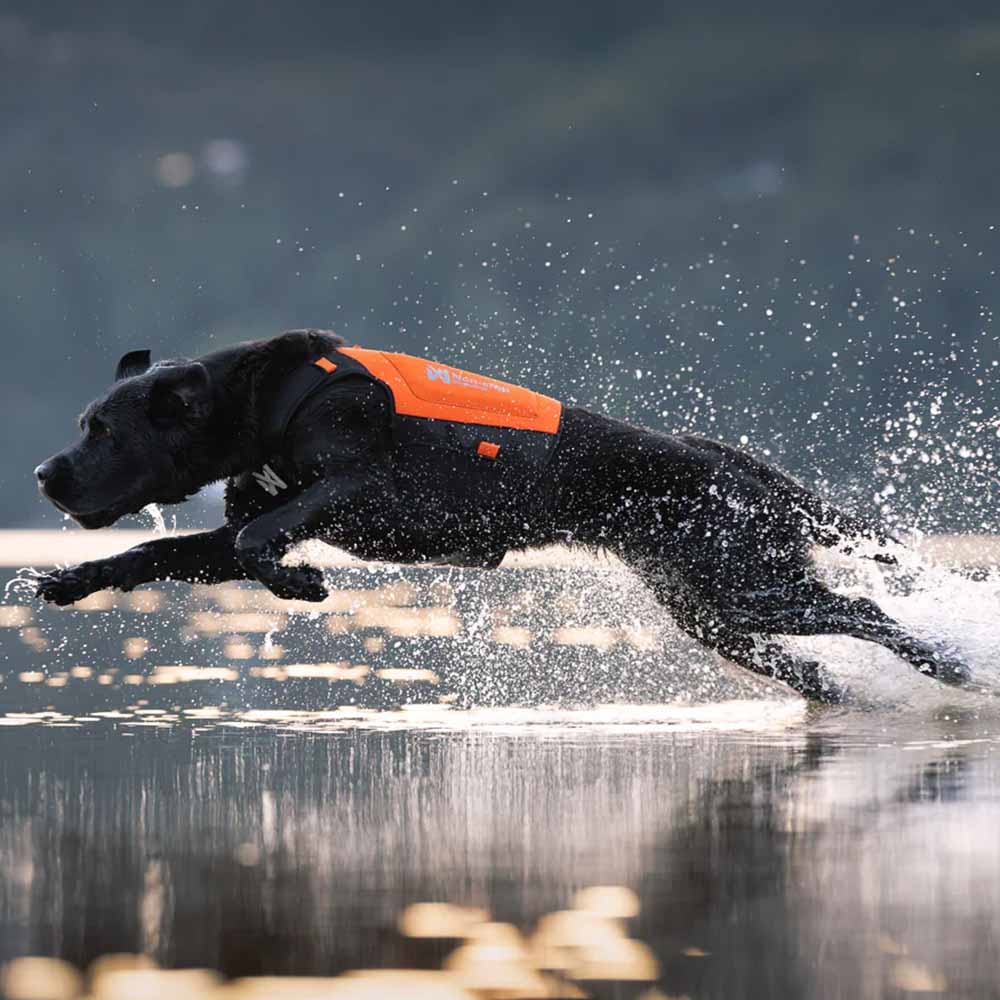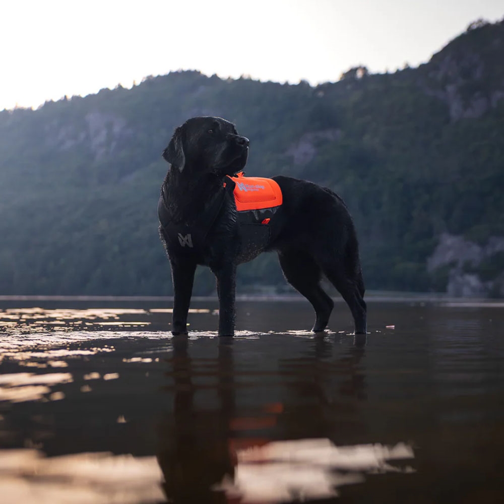 Vest giver hunden fuld bevægelsesfrihed på land og i vand. Den har et håndtag til at løfte hunden i, og så er den hurtig at tage af og på takket være et praktisk todelt design. Bagtil er der rebfastgørelse, som giver mulighed for snor eller lang line. På halssiden er der montoret orange lykker, hvor det er muligt at fastgøre små sporingsenheder og lygter.