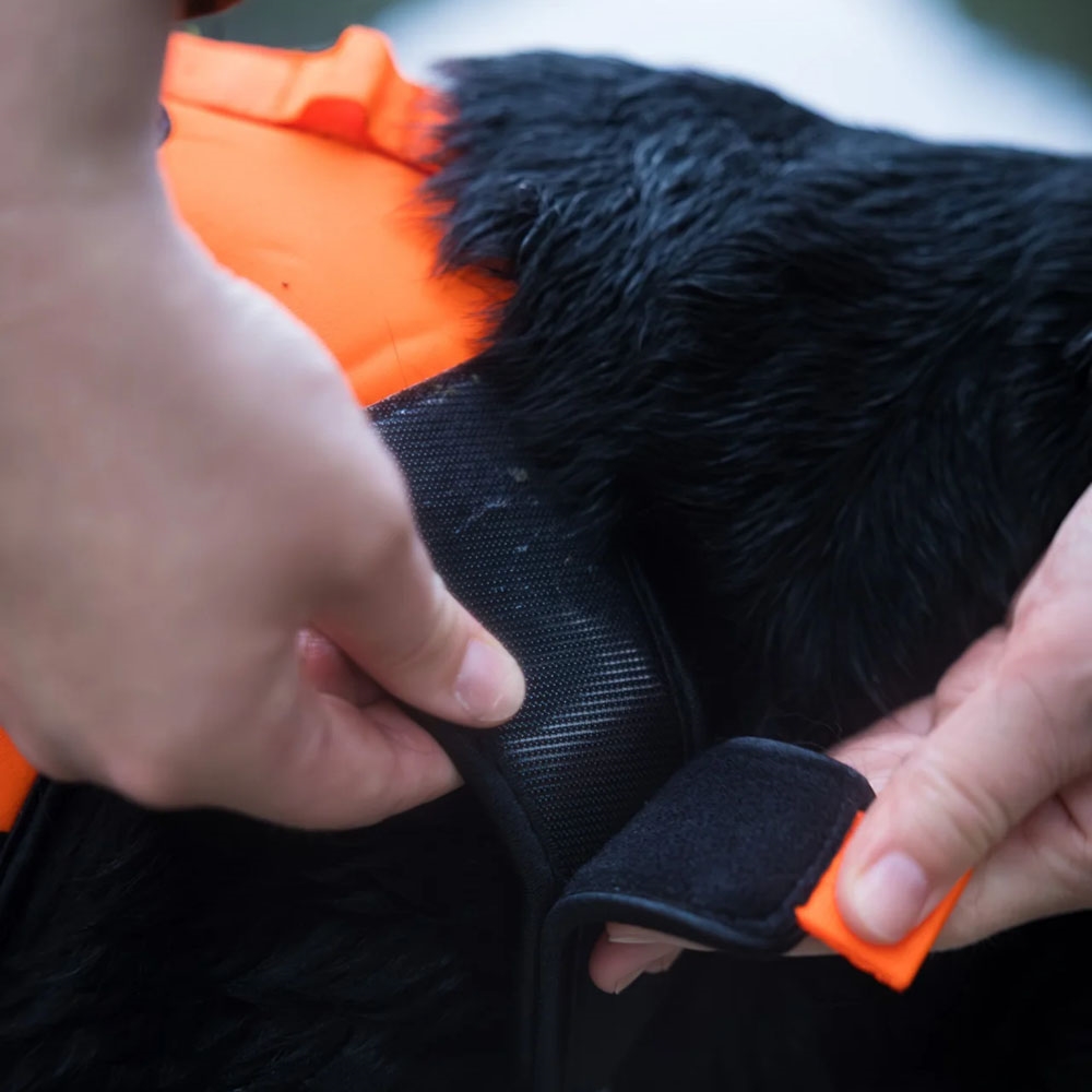 Udviklet og testet i Skandinavien med arbejdende apporterhunde, forsegler den fleksible neoprenkonstruktion din hunds kerne og isolerer mod iskoldt vand. Det nederste panel er lavet af forstærket neopren for at beskytte mod skarp vegetation, så din hund kan bevæge sig trygt hen over ujævnt terræn.