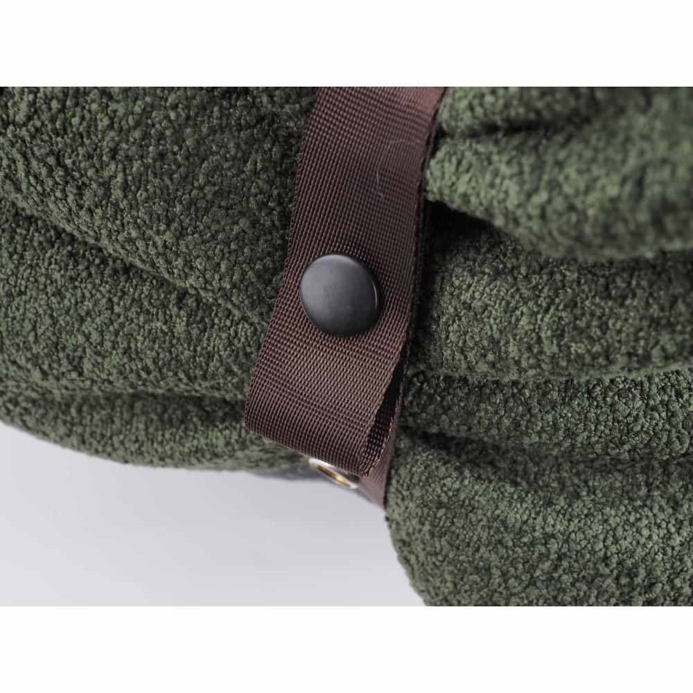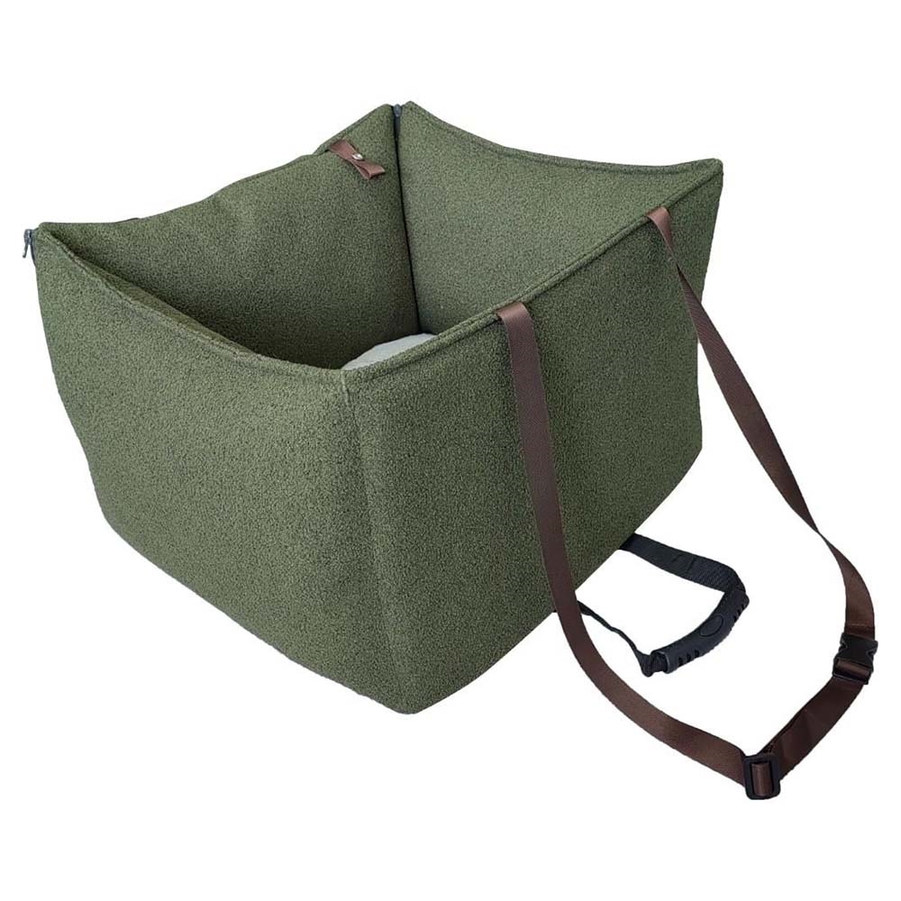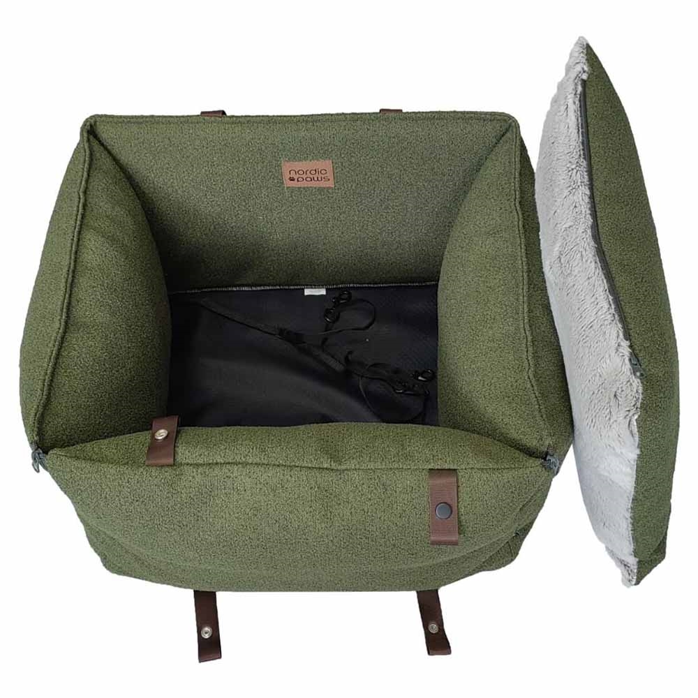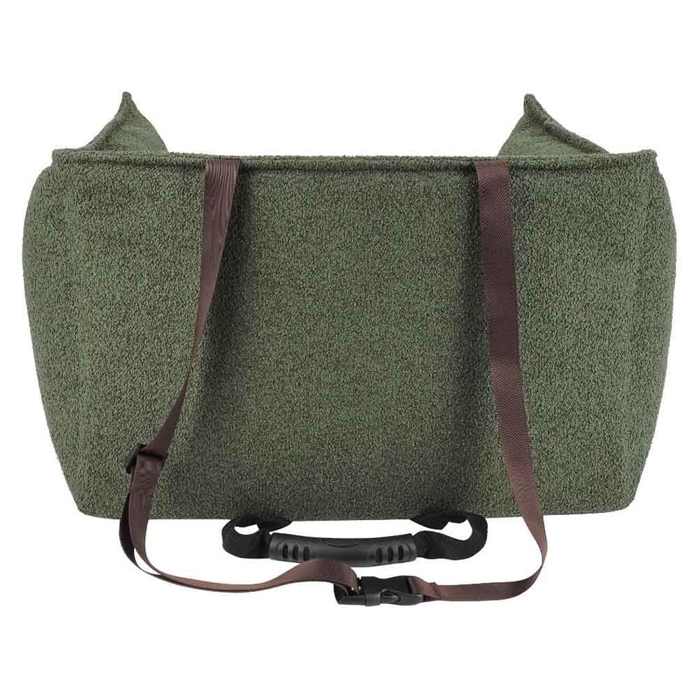 Grønt bilsæde til hunden, med foldbar front, bløde sider og aftagelig vaskbar pude.