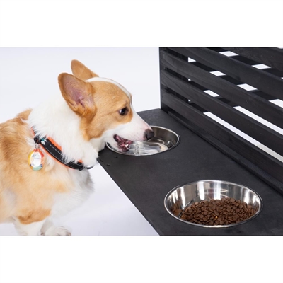 • Aftagelig skålholder med 2 aluminiumsskåle.