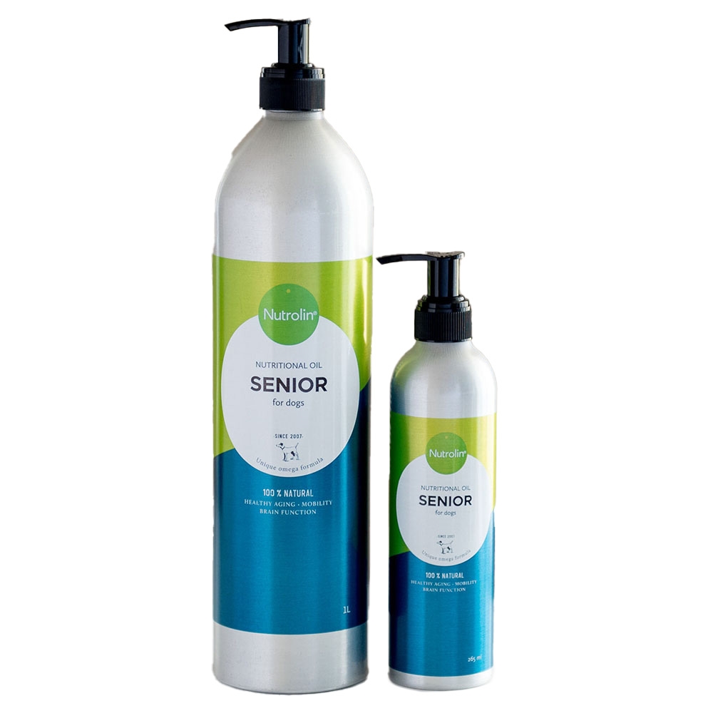 Her er en olie speciel designet til hunden med lidt år på bagen. Denne olie er med til at støtte den ældre hunds mobilitet, samt kan den være med til at holde hjernen og hundens humør stabilt. Nutrolin Senior er også tiltænkt senior hundens bevægelsesfunktion.