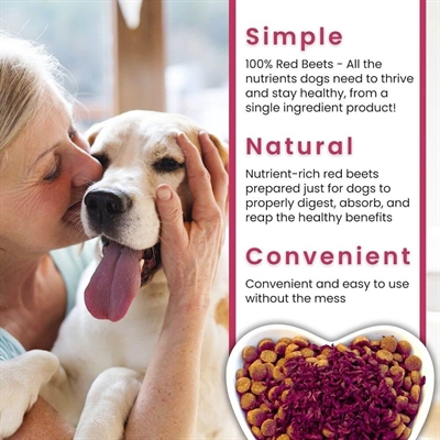 Erfaringen siger at rødbeder giver et ernæringsboost, hjælper huden mod kløe, beriger hud og pels også er det med til at give klare pelsfarver. Rødbeder giver support til fordøjelsen med prebiotic fiber, giver energi med de sunde kulhydrater også er de fyldt med mineraler og vitaminer.