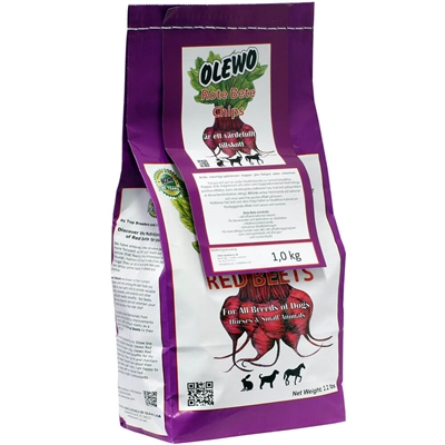 I over 40 år har Olewo fremstillet kosttilskud til hunde. Alene tilskud som er naturlige og deres virksomhed ligger sikkert i det smukke Tyskland. Der hvor man sætter en ære i at være ordentlig. Rødbede chips er godt for fordøjelsen, de optages utrolig hurtigt også er de helt naturlige. Der er ikke noget GMO, ingen tilsætningsstoffer, ikke kunstige farvestoffer og slet ikke andet end den rene naturlige rødbede som er nænsomt snittet og tørret.