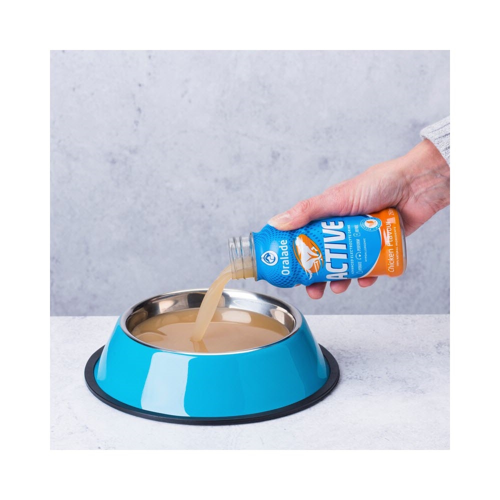 En drikkeklar sammensætning af elektrolytter, energi og L-carnitin til support af musklerne hos hunden. Oralade Active kan både bruges i forbindelse med træning, stævner og udstillinger – men også til familiehunden, der er udfordret af en varm sommer. Udfordringer med at hunden ikke drikker nok, er også ofte set – her er Oralade Active den perfekte løsning.