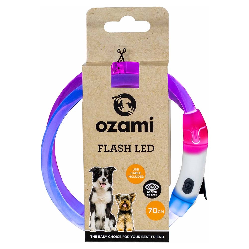 Med Ozami Flash LED Halsbånd, får du et smart og farverigt halsbånd, der øger synligheden markant på aftenture.